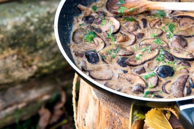 - Auf einer Pfanne 1 EL Butter mit 1 EL Öl erhitzen und darin Zwiebel und Knoblauch goldbraun anbraten. Dann die Pilze hinzufügen und auf stärkerer Hitze ca. 5 Minuten braten. Dann mit dem Bier ablöschen und 1 EL Butter hinzufügen. Auf starker Hitze noch kurz braten bis die Sauce dickflüssig wird. Dann die Schlagsahne, Salz und Pfeffer hinzufügen und 1-2 Minuten weiterkochen bis die Sauce abermals dickflüssig wird. Zum Schluss die Petersilie hinzufügen.