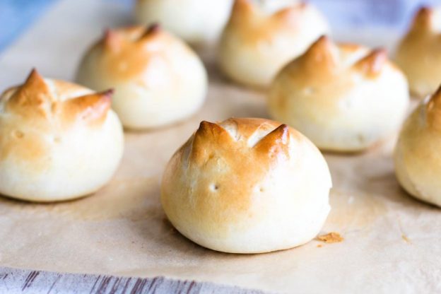 Ein Rezept für Hasenbrötchen. Sie sind ganz einfach zu machen. Den Teig kann man bis 4 Tage im Kühlschrank aufbewahren und daraus frische Brötchen backen.