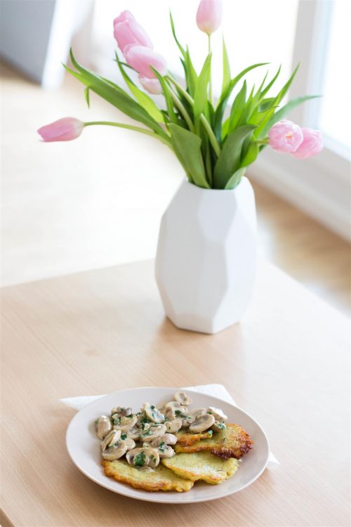 Hmm, die sehen gut aus. Ich glaub, ich mach am Wochenende auch mal wieder Kartoffelpuffer. Bei uns gibt es sie immer mit Apfelmus, aber die Idee mit der Pilzsauce finde ich auch gut.