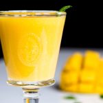 Mango Cocktail mit Limettensaft und Kokosmilch