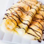 Schokoladen Pfannkuchen mit Nutella-Quarkfüllung und Erdbeeren
