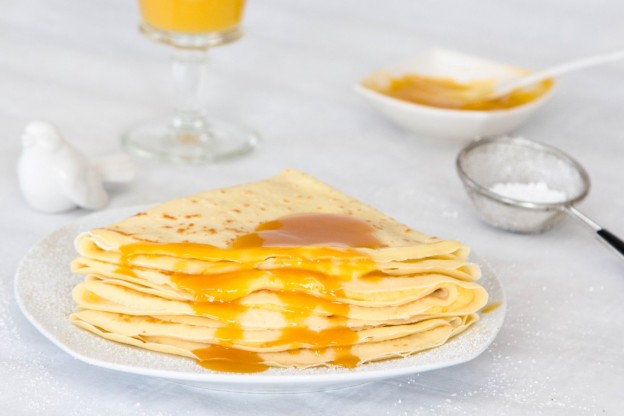 Hinweis: Man kann die doppelte Menge der Sauce zubereiten und die Pfannkuchen zusätzlich damit begießen.