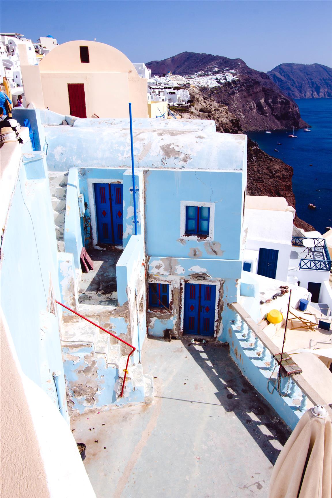 Die kleinen bunten Häuser, die zum Teil direkt in die Steilhänge der Caldera gebaut sind, wurden zu dem Markenzeichen der Insel. Finde einen ruhigen Ort (früh am Morgen wirst du am meisten Glück haben) und mach ein tolles Foto, dass dich an die Insel und die Reise erinnern wird.