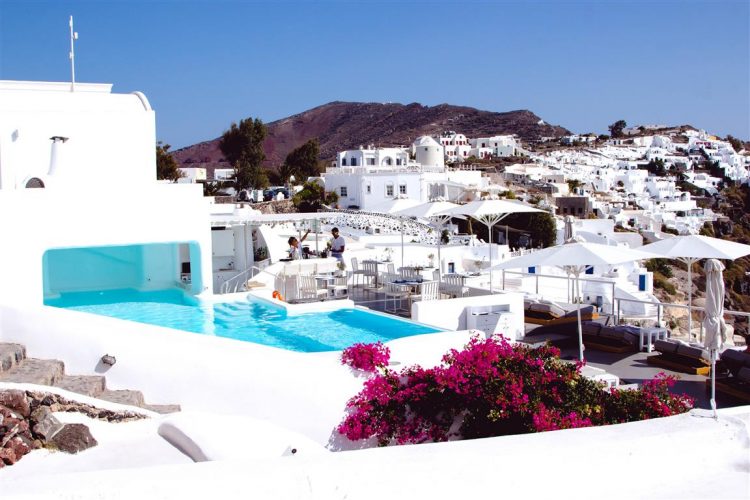 Auf der Insel gibt es einige größere Orte an denen man Urlaub machen kann. Dazu zählen zum Beispiel Fira – die Hauptstadt, in der Mitte der Insel, Oia im Norden und die archäologische Ausgrabungsstätte Akrotiri im Süden.