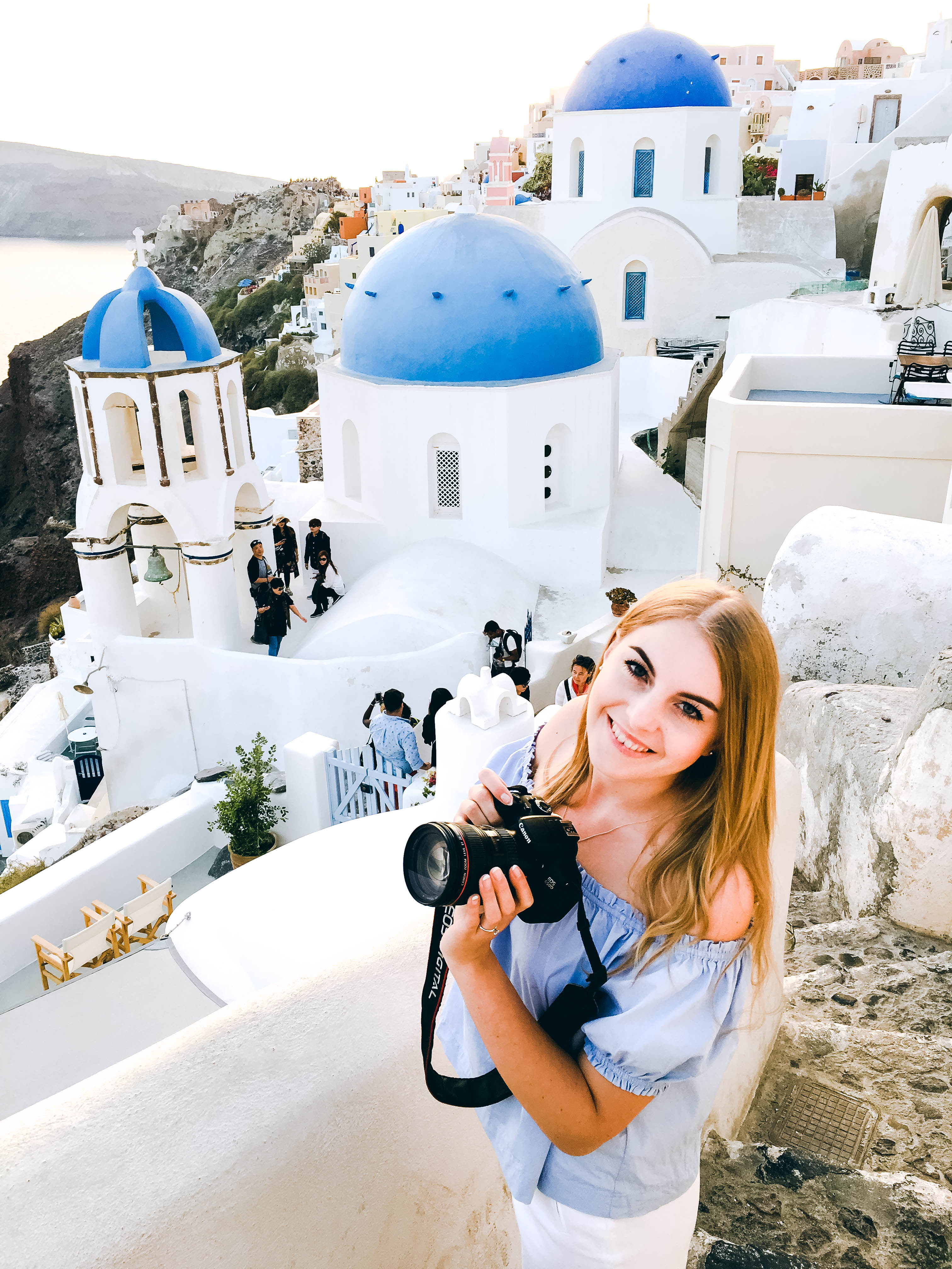 Santorini ist eine der 3.054 Inseln Griechenlands und war schon seit langer Zeit ein Urlaubsort den ich besuchen wollte. Die Vulkaninsel ist für ihre niedlichen Häuser mit blauen Dächern an den Klippen berühmt. Ein fantastischer Anblick! Einige Orte, wie Fira und Oia, sind zum Teil direkt in die Steilhänge der Caldera gebaut. Diese Orte bilden vom Meer aus eine unglaubliche Kulisse. In den Ortschaften selbst hat man auch einen faszinierenden Blick auf das Meer und die umliegenden Inseln.
