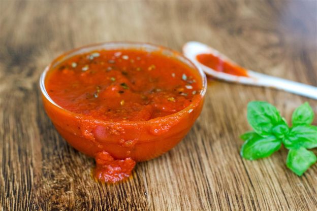 Ein Rezept für einfache und leckere Tomatensauce für Pizza und Nudeln. Sie ist in 15 Minuten fertig. Man muss nur alle Zutaten miteinander vermischen und dann köcheln lassen.